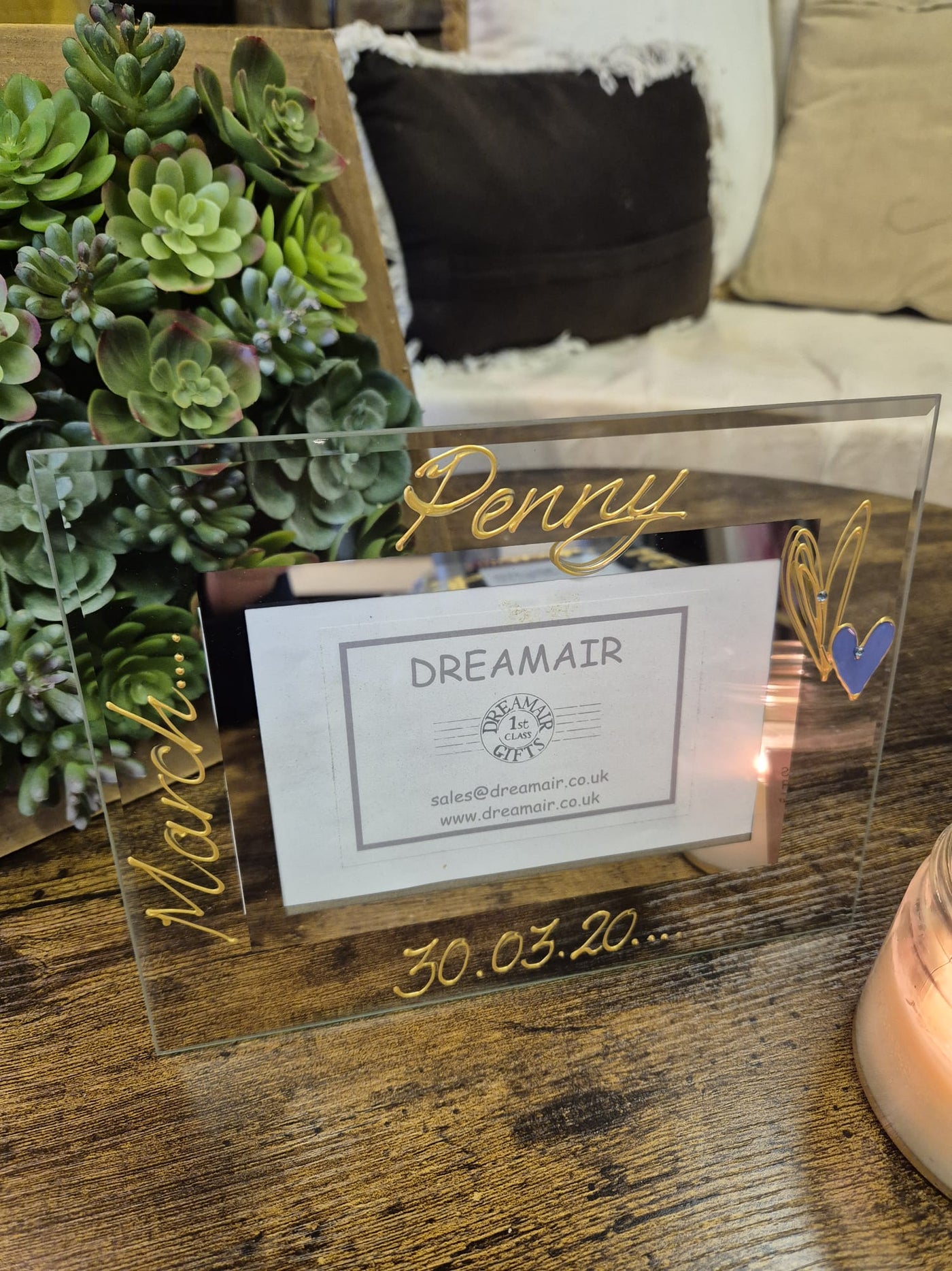 A lovely way to remember the perfect day. Put in a photo/picture frame a perfect memento of the special day. Hand painted with our newest contemporary design using 3D liner. Available in 2 size frames standard 6" x 4" and Large 7" x 5", please select size required from the drop drown.