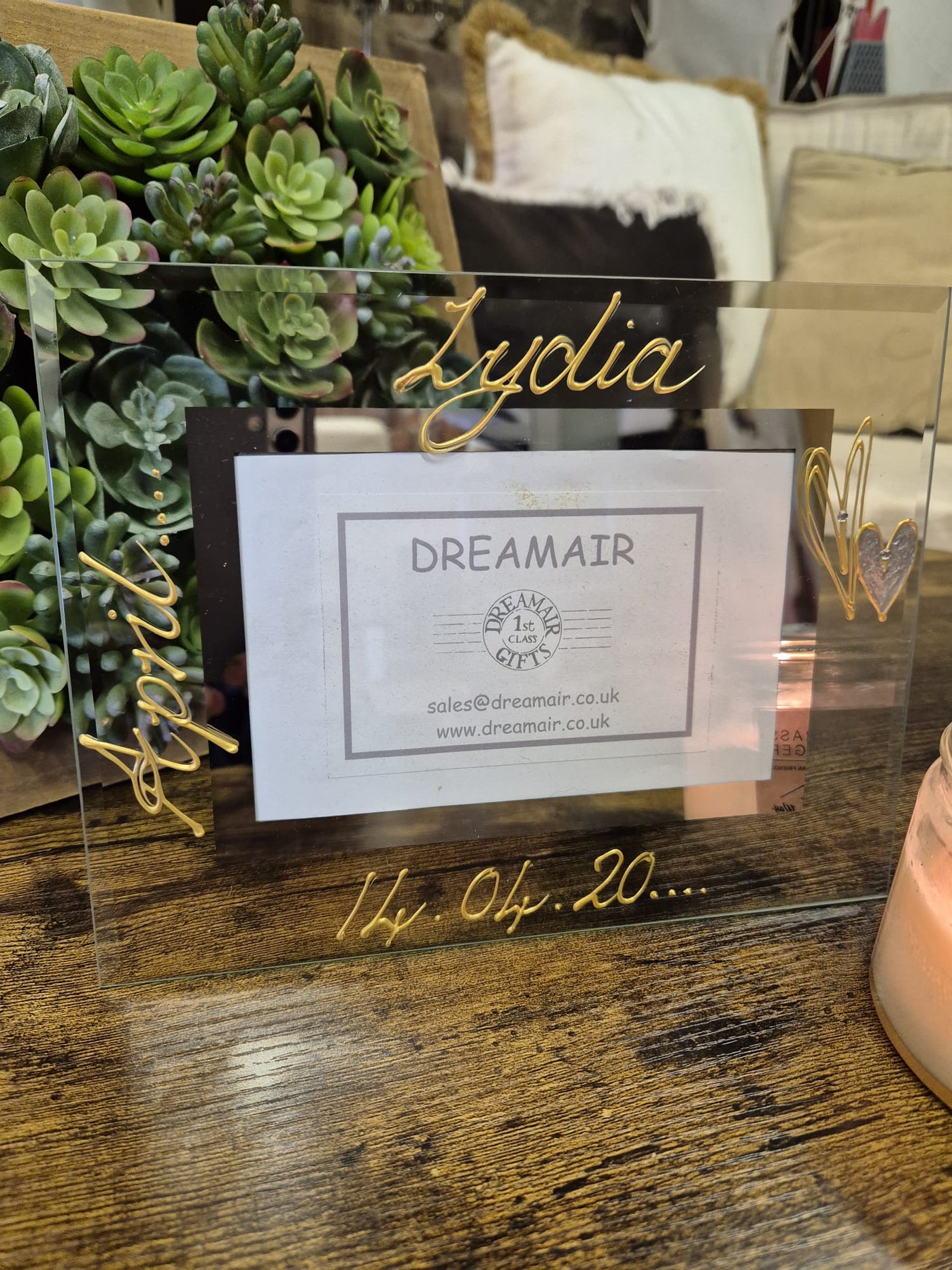 A lovely way to remember the perfect day. Put in a photo/picture frame a perfect memento of the special day. Hand painted with our newest contemporary design using 3D liner. Available in 2 size frames standard 6" x 4" and Large 7" x 5", please select size required from the drop drown.