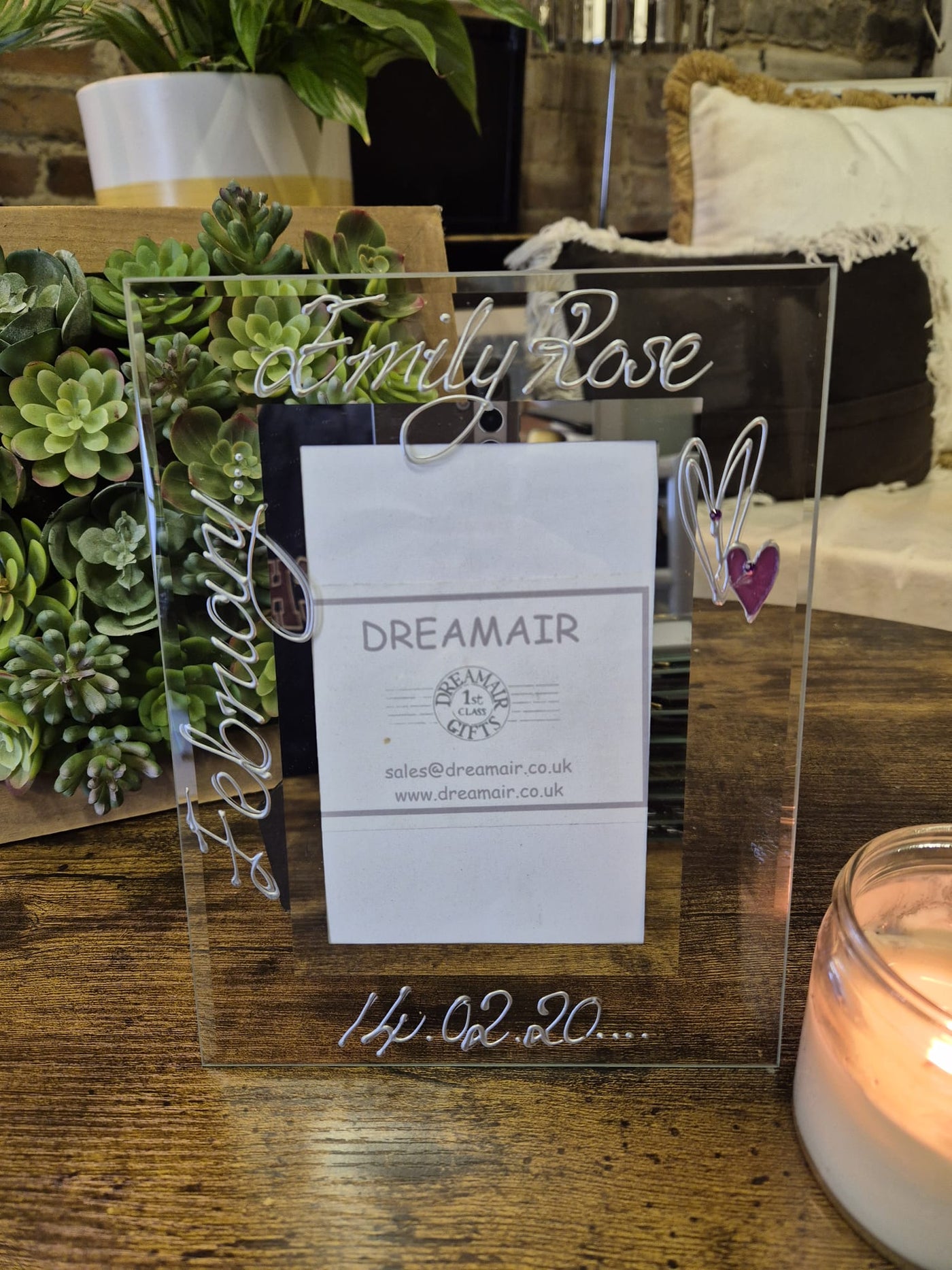 A lovely way to remember the perfect day. Put in a photo for a perfect memento of the special day. Hand painted using 3D liner and infills of colour.  Available in 2 size frames standard 4" x 6" and Large 5" x 7", please select size required from the drop drown.